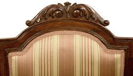 Coppia di poltroncine in legno intagliato con seduta e schienale imbottiti, XIX-XX secolo,cm 102x46x52