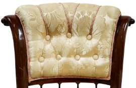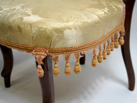 Coppia di poltroncine in noce con schienale e seduta imbottiti, decori intagliati, XIX secolo, cm 75x37x50