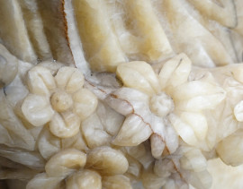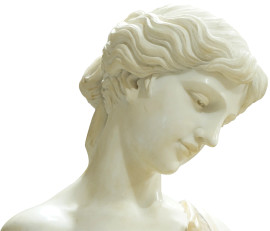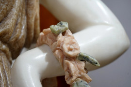 Coppia di sculture in marmo e alabastro rappresentanti due figure allegoriche femminili, basi in marmo nero, XX secolo, altezza cm 144 e cm 153, base cm 40,5, (difetti e restauri)