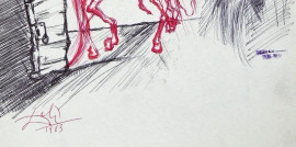 Disegno a tecnica mista su cartoncino, cm 33x24,5, firmato e datato, provenienza Galerie Rive Gauche Paris-Rome