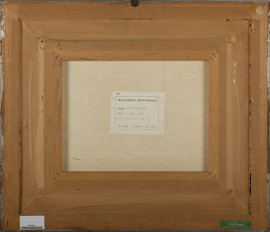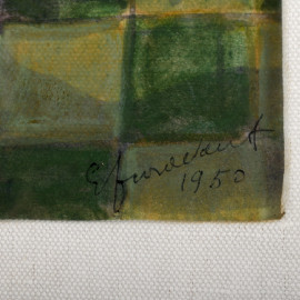 Donna a cena, olio su tela, firmato e datato in basso a destra "E. Fioravanti 1950", cm 34x42,5, entro cornice