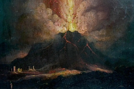Eruzione dell'Etna, XIX secolo, olio su tavola, cm 46,3x27