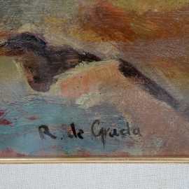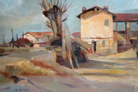 Esterno di casolare, olio su cartone, firmato, cm 45x61, entro cornice