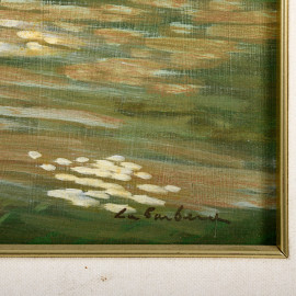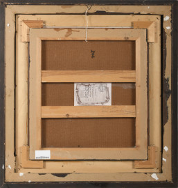 Figura a Villa Borghese, olio su compensato, firmato in basso a destra, cm 50x45, entro cornice