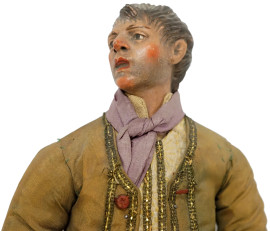 Figura da presepe in terracotta policroma e tessuto, XIX secolo, altezza cm 30,5 (difetti)