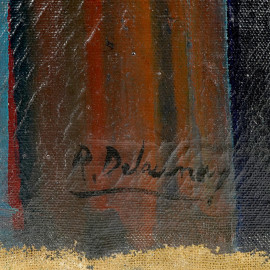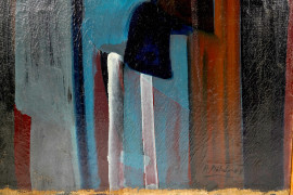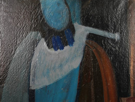 Figura, olio su tela, firmato, cm 72x52, entro cornice