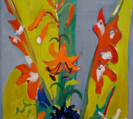 Fiori, olio su tela, firmato in alto a destra, cm 70x50, entro cornice