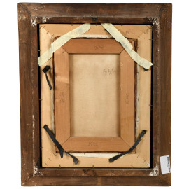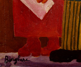 Franz Borghese (Roma, 1941 – 2005), Coppia con cane, olio su tela, firmato in basso a sinistra, cm 35x25, entro cornice
