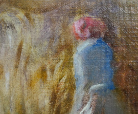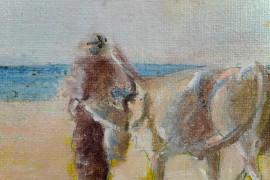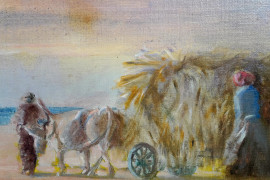 Il carro da fieno, XX secolo, olio su tela, cm 22,4x29,7, entro cornice