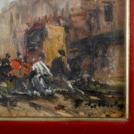 Impressione di piazza, XIX secolo, olio su tavoletta, cm 12,5x17,5, entro cornice
