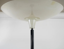 Lampada da terra in metallo colore nero con plafoniera in vetro, XX secolo, altezza cm 195,5, (difetti)
