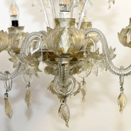 Lampadario a cinque bracci in vetro, cm 50x45 ca., (difetti)
