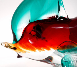 Lotto comosto da 3 pesci e 3 delfini in vetro di Murano, XX secolo, altezza massima cm 29,5