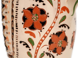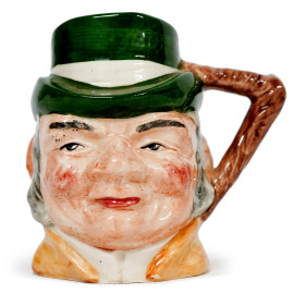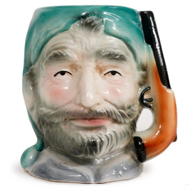 Lotto composto da 2 boccali, 1 tazza e 1 tazzina antropomorfe in ceramica policroma, XX secolo, altezza massima cm 31, (difetti)