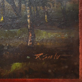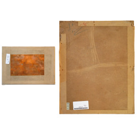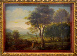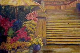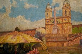 Lotto composto da 2 dipinti: Donna tra gli alberi, XIX-XX secolo, olio su tavoletta, entro cornice; Trinità dei Monti, olio su cartone, cm 36,5x28,5, (difetti)