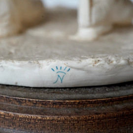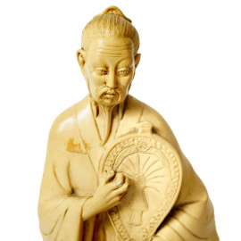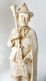 Lotto composto da 3 statuine in resina, XX secolo: coppia di saggi orientali e un cacciatore, altezza massima cm 44,5, (difetti)