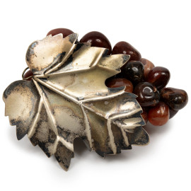 Lotto composto da 4 frutti in pietra, con foglie in argento e metallo argentato, misura max cm 7x19,5