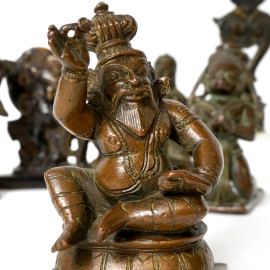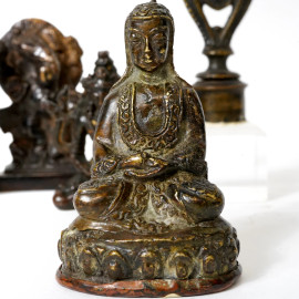 Lotto composto da 7 sculture orientali in bronzo, XX secolo, misure massime cm 12 (difetti)
