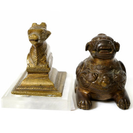 Lotto composto da 7 sculture orientali in bronzo, XX secolo, misure massime cm 6 (difetti)