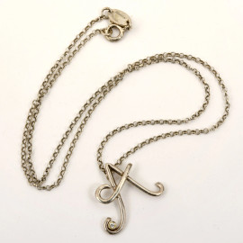 Lotto composto da: catenina (lunghezza cm 41) con ciondolo A in argento con diamantino (cm 2); catenina (lunghezza cm 44) con ciondolo D in argento con diamantino (cm 2); catenina (lunghezza cm 42) con ciondolo E in argento con diamantino (cm 2)
