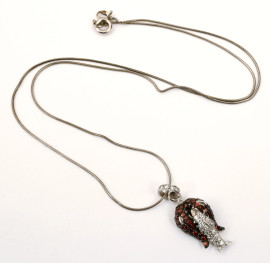 Lotto composto da: orecchini modello Chantecler in argento con zirconi e granati, cm 2,5; catenina in argento (lunghezza cm 43) con pendente con zirconi e granati (cm 3)