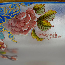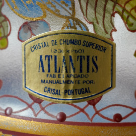 Lotto composto da un vaso e una centro tavola in cristallo con decori policromi floreali, Portogallo, Atlantis, XX secolo, altezza max cm 31,5