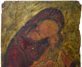 Lotto di due icone, XIX-XX secolo, tempera su tavola, misura max cm 19,5x14,5 (difetti)