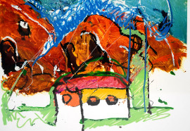 Mario Schifano (Homs, Libia, 1934 - Roma, 1998), Paesaggio, P.A., cm 80x60, entro cornice