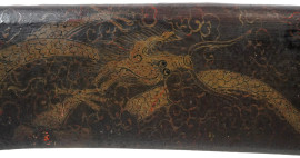 Modello di Katana con fodero in cuoio inciso con dragoni, XX secolo, cm 102, (difetti)