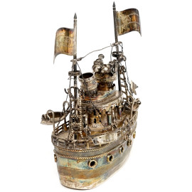 Nave in metallo argentato, cm 18x8, (difetti)