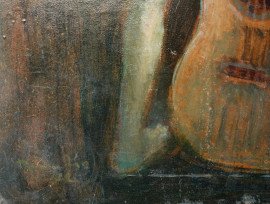 Nudo femminile con chitarra, olio su masonite, cm 25x40