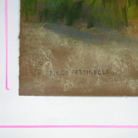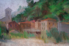 Paesaggio con case, XX secolo, gessetti su carta, cm 33x42, entro cornice