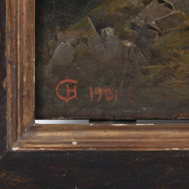 Paesaggio con croce e cometa, olio su tela, cm 97x127, siglato e datato '1906' in basso a sinistra, entro cornice