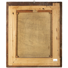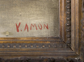 Paesaggio fluviale con mucche, XIX secolo, olio su tela, cm 70x55, firmato in basso a destra, entro cornice