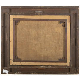 Paesaggio fluviale con mulino a vento, XIX secolo, olio su tela, cm 51x62, entro cornice