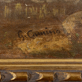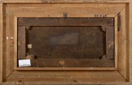 Paesaggio lacustre, olio su tela, XIX-XX secolo, cm 24,5x48, entro cornice
