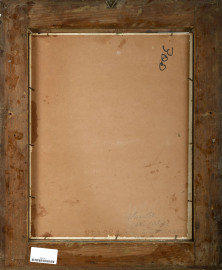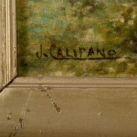 Pastori e armenti, olio su cartone telato, firmato in basso a sinistra, cm 45x35, entro cornice