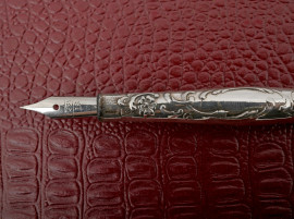Pennino in argento con decori floreali cesellati, G. Vavassori, entro custodia
