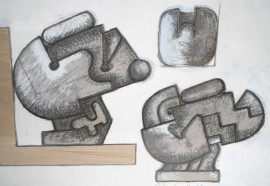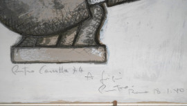 Pietro Cascella (Pescara, 1921 - Pietrasanta, 2008), Studio di scultura, tecnica mista su carta, firmato e datato "74", con dedica datata Roma 18.01.80, cm 47,5x66,5, entro cornice