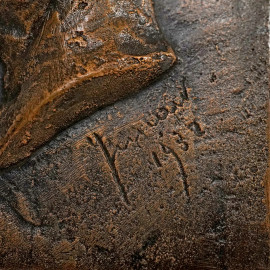 Placca in bronzo con profilo virile, XX secolo, cm 14x9