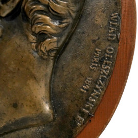Placca in bronzo su base in legno ritraente Edward Jelowicki, incisa "Wlad Oleszczynski / Paris 1841", cm 24,5x19