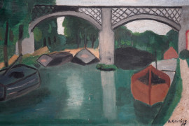 Ponte nuovo a Parigi, olio su tela, firmato, cm 38x55, entro cornice