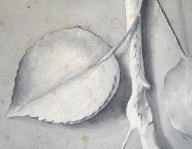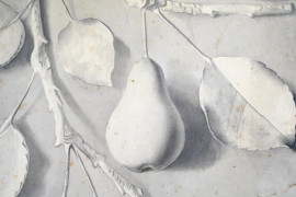 Ramo di pero, XIX-XX secolo, acquerello e matita su carta, cm 39,5x30, entro cornice, (difetti)