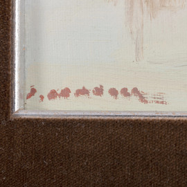 Rinaldo Caressa (Roma, 1929 – 2009), Laguna di Burano, olio su tela, firmato in basso a sinistra, cm 10x30, entro cornice