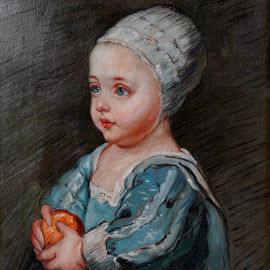 Ritratto di Bambina, olio su tavola, firmato in alto a sinistra, cm 29x22, entro cornice