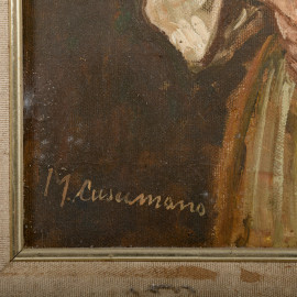 Ritratto di donna anziana, olio su tela, cm 60x40, firmato in basso a sinistra, entro cornice