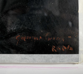 Ritratto di donna, olio su cartoncino, firmato in basso a destra, cm 43x43, entro cornice (difetti)