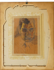 Ritratto di donna, olio su tavola, sul verso Ritratto d'uomo, matita e tracce di olio su tavola, XX secolo, cm 30,5x21,5, entro cornice