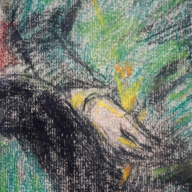 Ritratto di donna seduta, pastelli su carta, firmato in basso a destra; sul verso Ritratto femminile a figura intera, pastelli su carta, XX secolo, cm 47x32, entro cornice