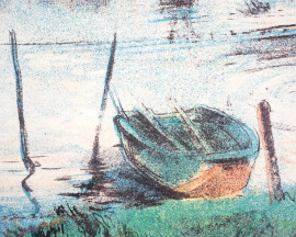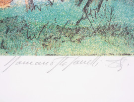 Romano Stefanelli, Trasimeno, litografia a colori, prova d'artista (II/XII), firmata e siglata in basso a destra, cm 55,5x75,5, entro cornice